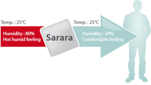 Osuszanie, po japońsku "Sarara", redukuje wilgotność w pomieszczeniach bez oddziaływania na temperaturę pokojową dzięki mieszaniu zimnego, suchego powietrza z ciepłym powietrzem. Nie będzie więc już gorących i dusznych pomieszczeń!